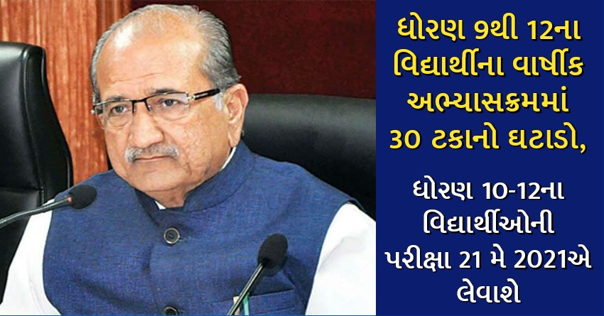 ધોરણ 9થી 12ના વિદ્યાર્થીના વાર્ષીક અભ્યાસક્રમમાં 30 ટકાનો ઘટાડો, ધોરણ 10-12ના વિદ્યાર્થીઓની પરીક્ષા 21 મે 2021એ લેવાશે