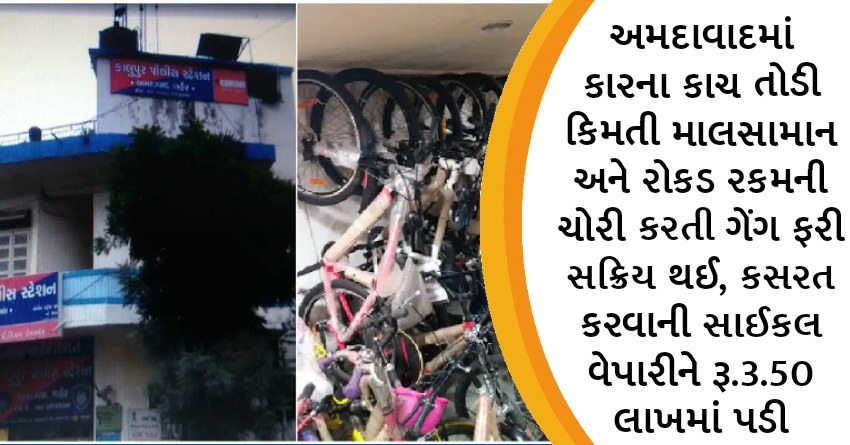 અમદાવાદમાં કારના કાચ તોડી કિમતી માલસામાન અને રોકડ રકમની ચોરી કરતી ગેંગ ફરી સક્રિય થઈ, કસરત કરવાની સાઈકલ વેપારીને રૂ.3.50 લાખમાં પડી