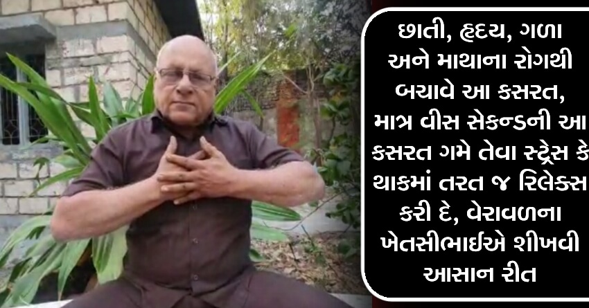 છાતી, હૃદય, ગળા અને માથાના રોગથી બચાવે આ કસરત, માત્ર વીસ સેકન્ડની આ કસરત ગમે તેવા સ્ટ્રેસ કે થાકમાં તરત જ રિલેક્સ કરી દે, વેરાવળના ખેતસીભાઈએ શીખવી આસાન રીત