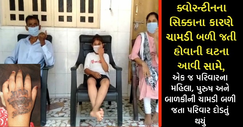 ક્વોરન્ટીનના સિક્કાના કારણે ચામડી બળી જતી હોવાની ઘટના આવી સામે, એક જ પરિવારના મહિલા, પુરુષ અને બાળકીની ચામડી બળી જતા પરિવાર દોડતું થયું