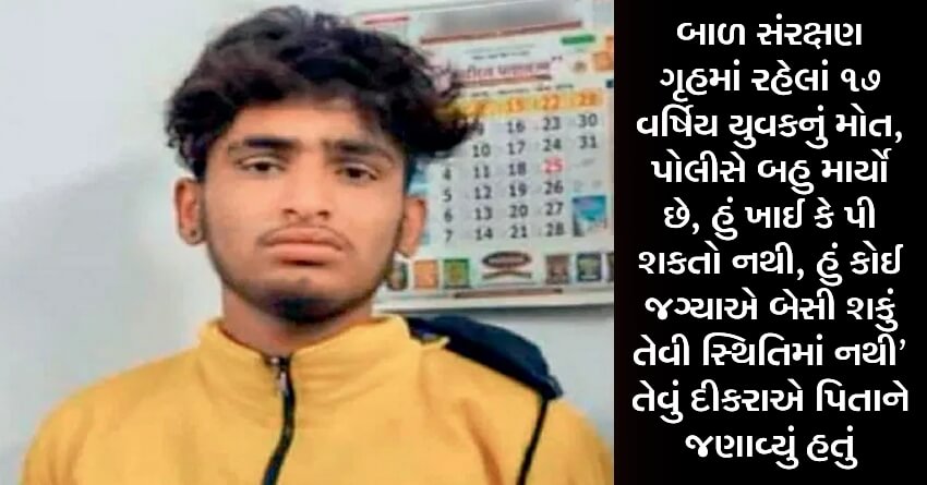 બાળ સંરક્ષણ ગૃહમાં રહેલાં ૧૭ વર્ષિય યુવકનું મોત, પોલીસે બહુ માર્યો છે, હું ખાઈ કે પી શકતો નથી, હું કોઈ જગ્યાએ બેસી શકું તેવી સ્થિતિમાં નથી’ તેવું દીકરાએ પિતાને જણાવ્યું હતું