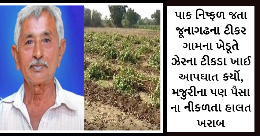 પાક નિષ્ફળ જતા જૂનાગઢના ટીકર ગામના ખેડૂતે ઝેરના ટીકડા ખાઈ આપઘાત કર્યો, મજુરીના પણ પૈસા ના નીકળતા હાલત ખરાબ