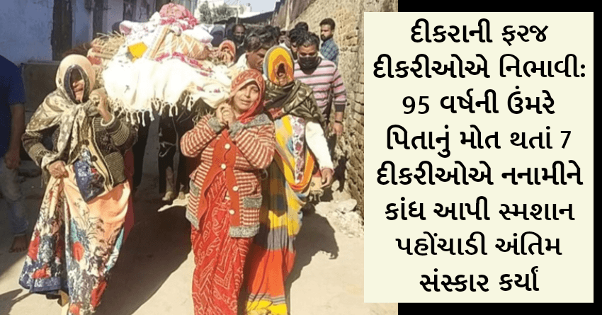 દીકરાની ફરજ દીકરીઓએ નિભાવી: 95 વર્ષની ઉંમરે પિતાનું મોત થતાં 7 દીકરીઓએ નનામીને કાંધ આપી સ્મશાન પહોંચાડી અંતિમ સંસ્કાર કર્યાં