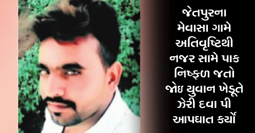 જેતપુરના મેવાસા ગામે અતિવૃષ્ટિથી નજર સામે પાક નિષ્ફળ જતો જોઇ યુવાન ખેડૂતે ઝેરી દવા પી આપઘાત કર્યો