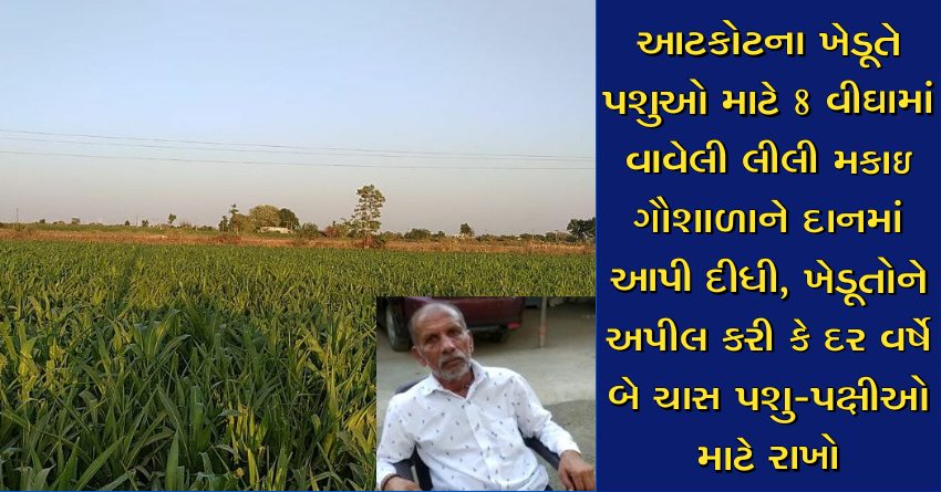 આટકોટના ખેડૂતે પશુઓ માટે 8 વીઘામાં વાવેલી લીલી મકાઇ ગૌશાળાને દાનમાં આપી દીધી, ખેડૂતોને અપીલ કરી કે દર વર્ષે બે ચાસ પશુ-પક્ષીઓ માટે રાખો
