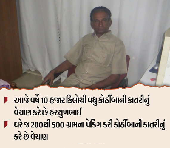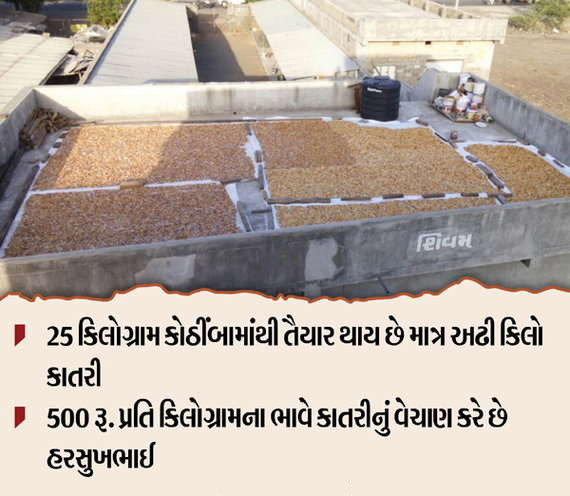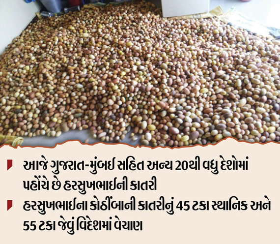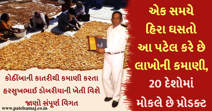 એક સમયે હિરા ઘસીને પોતાના પરિવારનું ભરણપોષણ કરતા હરસુખભાઈ ડોબરીયા આજે કડવા કોઠીંબાની ખેતી કરીને લાખોની કમાણી કરી રહ્યાં છે. પોતાની પાંચ વિઘા જમીનમા કોઠીંબાની ખેતી કરીને કાતરીનો વ્યવસાય શરૂ કરનાર આ ખેડૂતે આજે પોતાની પ્રોડક્ટ ગુજરાત મુંબઈ સહિત 20 દેશોમાં પહોંચાડી છે. એટલું જ નહીં પોતાની સાથે અન્ય ખેડૂતોને પણ પડતર જમીનમાંથી પૈસા મળી રહે તે માટે કોઠીંબાની ખેતી કરાવે છે. પરિવારના સભ્યો પણ હરસુખભાઈને સપોર્ટ કરી તેમની સાથે જોડાયા છે.