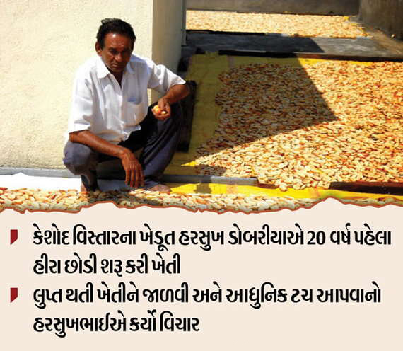 ખેતી પ્રધાન ભારતના ખેડૂતો આજે નવી નવી ટેકનોલોજી અને આધુનિક અભિગમ સાથે ખેતીમાંથી સારી એવી કમાણી કરતા થયા છે. કેટલાય ખેડૂતોએ ખેતપેદાશોને પ્રોસેસિંગ સાથે માર્કેટમાં મુકીને બિઝનેસ શરૂ કર્યાં છે. આવા જ જુનાગઢ જિલ્લાના કેશોદના પટેલ ખેડૂત હરસુખભાઈ ડોબરીયાએ પરંપરાગત જુની ખેતીને આધુનિકતા સાથે સાંકળીને નવો રસ્તો કંડાર્યો છે. હરસુખભાઈએ ઓછી મહેનત અને નજીવા ખર્ચે થતી ખેતીને લાખોના વ્યવસાયમાં બદલી લીધી છે.