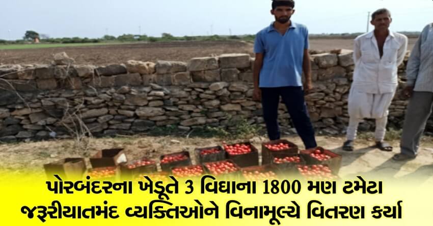 પોરબંદરના ખેડૂતે 3 વિઘાના 1800 મણ ટમેટા જરૂરીયાતમંદ વ્યક્તિઓને વિનામૂલ્યે વિતરણ કર્યા