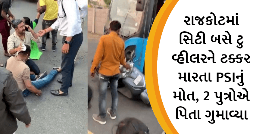 રાજકોટમાં સિટી બસે ટુ વ્હીલરને ટક્કર મારતા PSIનું મોત, 2 પુત્રોએ પિતા ગુમાવ્યા