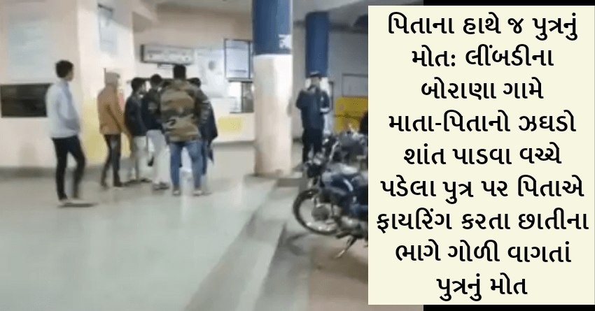 પિતાના હાથે જ પુત્રનું મોત: લીંબડીના બોરાણા ગામે માતા-પિતાનો ઝઘડો શાંત પાડવા વચ્ચે પડેલા પુત્ર પર પિતાએ ફાયરિંગ કરતા છાતીના ભાગે ગોળી વાગતાં પુત્રનું મોત