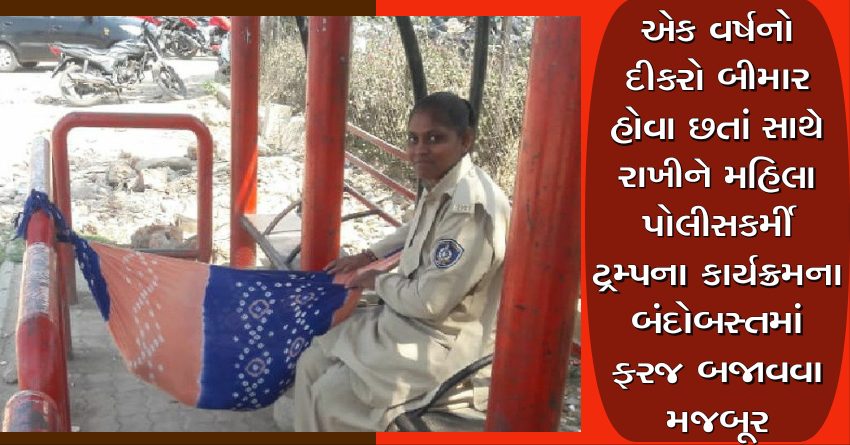 એક વર્ષનો દીકરો બીમાર હોવા છતાં સાથે રાખીને મહિલા પોલીસકર્મી ટ્રમ્પના કાર્યક્રમના બંદોબસ્તમાં ફરજ બજાવવા મજબૂર