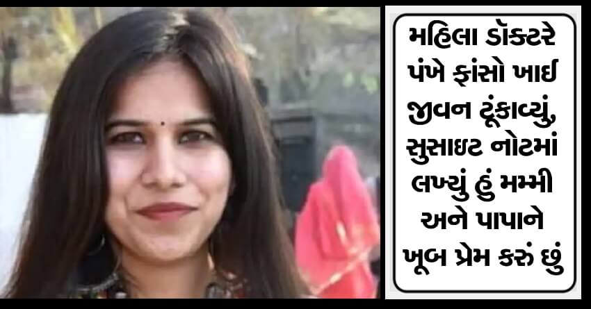 મહિલા ડૉક્ટરે પંખે ફાંસો ખાઈ જીવન ટૂંકાવ્યું, સુસાઇટ નોટમાં લખ્યું હું મમ્મી અને પાપાને ખૂબ પ્રેમ કરું છું