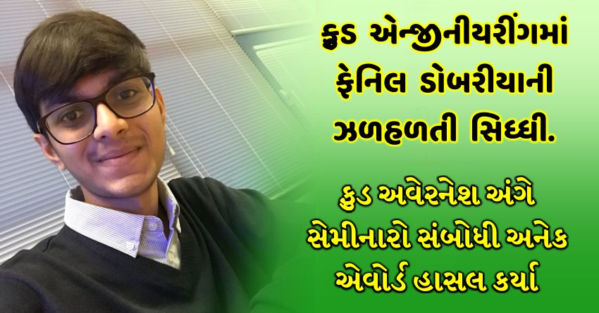ફુડ એન્જીનીયરીંગમાં ફેનિલ ડોબરીયાની ઝળહળતી સિધ્ધી.