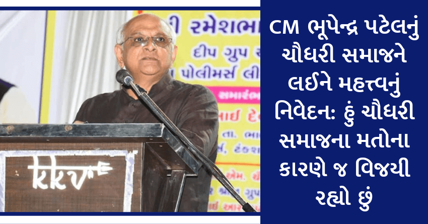 CM ભૂપેન્દ્ર પટેલનું ચૌધરી સમાજને લઈને મહત્ત્વનું નિવેદન: હું ચૌધરી સમાજના મતોના કારણે જ વિજયી રહ્યો છું