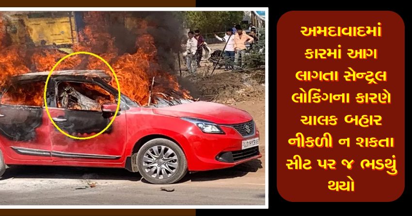 અમદાવાદમાં કારમાં આગ લાગતા સેન્ટ્રલ લોકિંગના કારણે ચાલક બહાર નીકળી ન શકતા સીટ પર જ ભડથું થયો