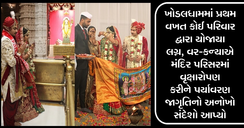 ખોડલધામમાં પ્રથમ વખત કોઈ પરિવાર દ્વારા યોજાયા લગ્ન, વર-કન્યાએ મંદિર પરિસરમાં વૃક્ષારોપણ કરીને પર્યાવરણ જાગૃતિનો અનોખો સંદેશો આપ્યો