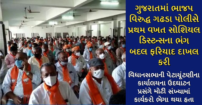 ગુજરાતમાં ભાજપ વિરુદ્ધ ગઢડા પોલીસે પ્રથમ વખત સોશિયલ ડિસ્ટન્સના ભંગ બદલ ફરિયાદ દાખલ કરી, વિધાનસભાની પેટાચૂંટણીના કાર્યાલયના ઉદઘાટન પ્રસંગે મોટી સંખ્યામાં કાર્યકરો ભેગા થયા હતા