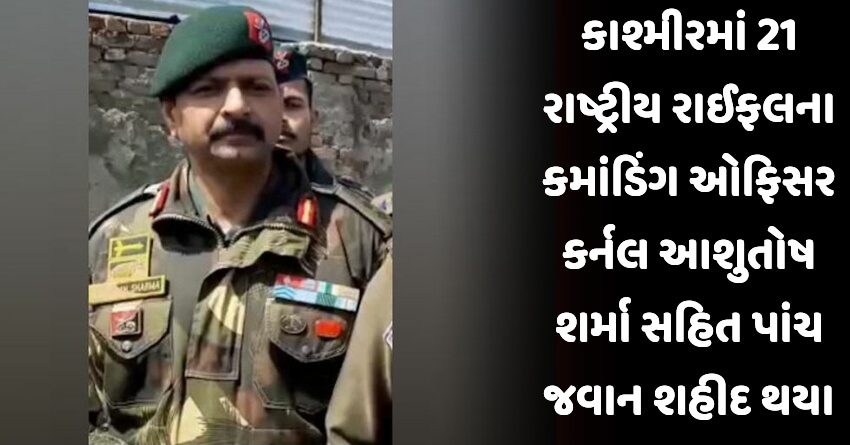 કાશ્મીરમાં 21 રાષ્ટ્રીય રાઈફલના કમાંડિંગ ઓફિસર કર્નલ આશુતોષ શર્મા સહિત પાંચ જવાન શહીદ થયા