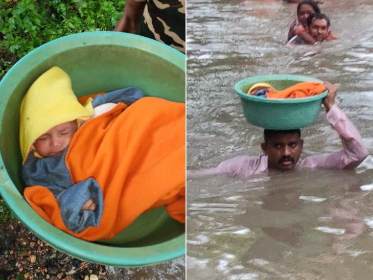 વડોદરામાં શ્રાવણ માસના પ્રથમ દિવસે જ કૃષ્ણ જન્મ જેવું દ્રશ્ય સર્જાયું, દોઢ માસના બાળકને બચાવવા PSI ટોપલામાં લઈને નીકળ્યા