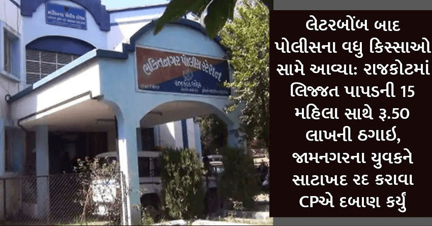 લેટરબોંબ બાદ પોલીસના વધુ કિસ્સાઓ સામે આવ્યા: રાજકોટમાં લિજ્જત પાપડની 15 મહિલા સાથે રૂ.50 લાખની ઠગાઇ, જામનગરના યુવકને સાટાખદ રદ કરાવા CPએ દબાણ કર્યું