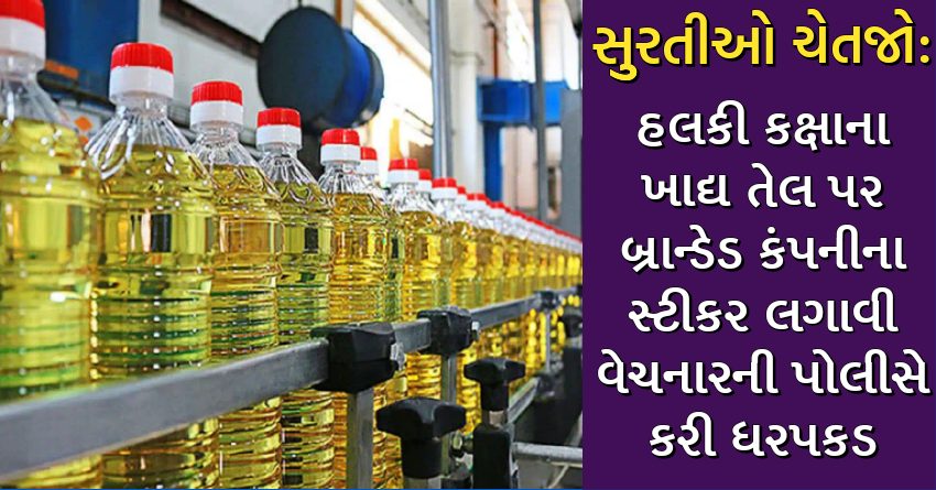 સુુરતીઓ ચેતજો: હલકી કક્ષાના ખાદ્ય તેલ પર બ્રાન્ડેડ કંપનીના સ્ટીકર લગાવી વેચનારની પોલીસે કરી ધરપકડ