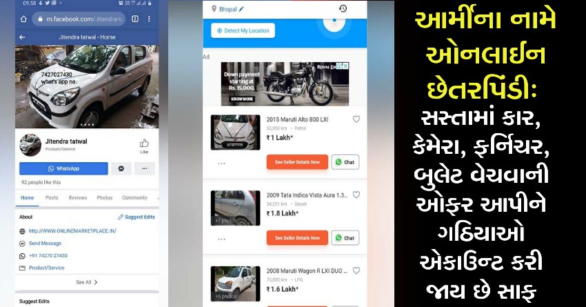 આર્મીના નામે ઓનલાઈન છેતરપિંડી: સસ્તામાં કાર, કેમેરા, ફર્નિચર, બુલેટ વેચવાની ઓફર આપીને ગઠિયાઓ એકાઉન્ટ કરી જાય છે સાફ