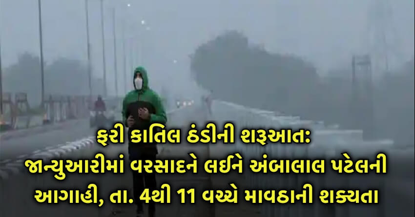 ફરી કાતિલ ઠંડીની શરૂઆત: જાન્યુઆરીમાં વરસાદને લઈને અંબાલાલ પટેલની આગાહી, તા. 4થી 11 વચ્ચે માવઠાની શક્યતા