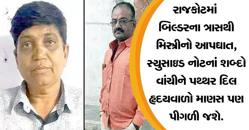 રાજકોટમાં બિલ્ડરના ત્રાસથી મિસ્ત્રીનો આપઘાત, સ્યુસાઇડ નોટનાં શબ્દો વાંચીને પથ્થર દિલ હૃદયવાળો માણસ પણ પીગળી જશે.