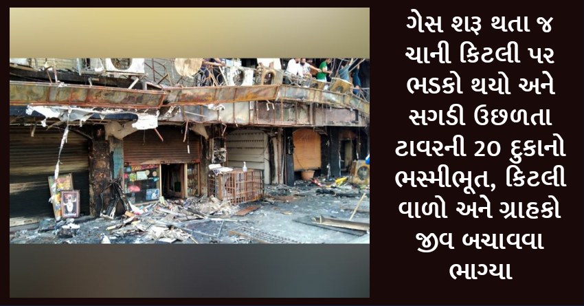 ગેસ શરૂ થતા જ ચાની કિટલી પર ભડકો થયો અને સગડી ઉછળતા ટાવરની 20 દુકાનો ભસ્મીભૂત, કિટલી વાળો અને ગ્રાહકો જીવ બચાવવા ભાગ્યા