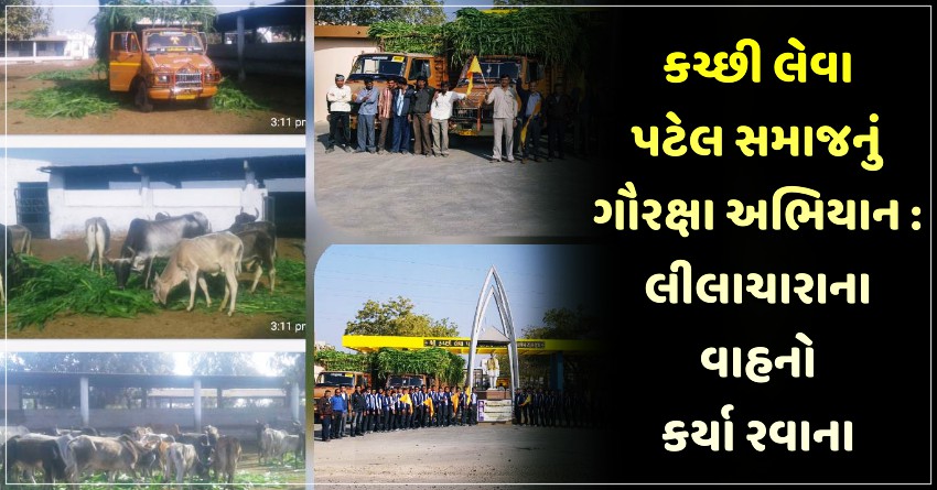 કચ્છી લેવા પટેલ સમાજનું ગૌરક્ષા અભિયાન : લીલાચારાના વાહનો કર્યા રવાના