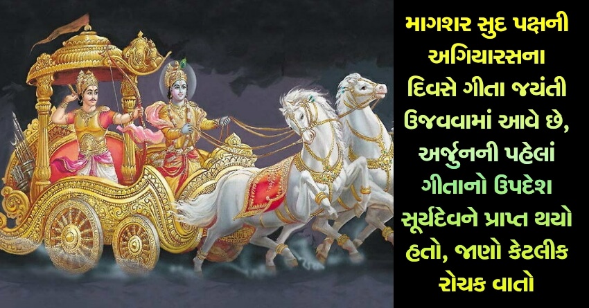 ભગવાન શ્રીકૃષ્ણએ કુરુક્ષેત્રના મેદાનમાં અર્જુનને ગીતાનો ઉપદેશ આપ્યો હતો, પરંતુ શ્રીકૃષ્ણ અને અર્જુન સિવાય પણ ગીતાને અનેકવાર બોલવામાં આવી હતી અને સાંભળવામાં આવી હતી. સામાન્ય રીતે બધા લોકો એ નથી જાણતા કે કુરુક્ષેત્રમાં શ્રીકૃષ્ણએ અર્જુનને ગીતાનો ઉપદેશ આપ્યો હતો. કુરુક્ષેત્રનું મેદાન ગીતાની ઉત્પત્તિનું સ્થાન છે. કહેવાય છે કે કળયુગની શરૂઆતના 30 વર્ષો પહેલાં જ ગીતાનો જન્મ થયો. એટલા માટે માગશર સુદ પક્ષની અગિયારસના દિવસે ગીતા જયંતી ઉજવવામાં આવે છે. આ વખતે આ પર્વ 8 ડિસેમ્બરે ઉજવવામાં આવશે.