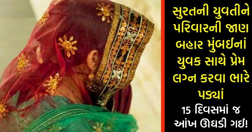 સુરતની યુવતીને પરિવારની જાણ બહાર મુંબઈનાં યુવક સાથે પ્રેમ લગ્ન કરવા ભારે પડ્યાં, 15 દિવસમાં જ આંખ ઊઘડી ગઈ!