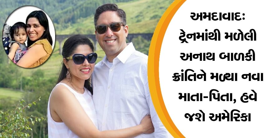 અમદાવાદ: ટ્રેનમાંથી મળેલી અનાથ બાળકી ક્રાંતિને મળ્યા નવા માતા-પિતા, હવે જશે અમેરિકા