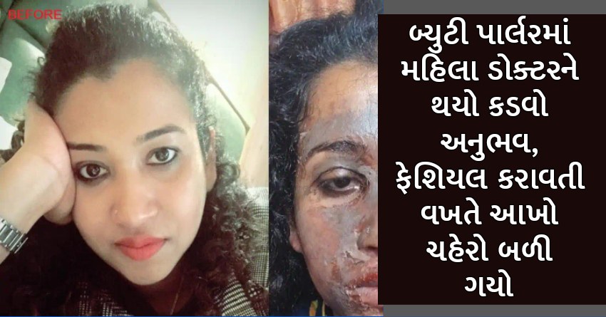 બ્યુટી પાર્લરમાં મહિલા ડોક્ટરને થયો કડવો અનુભવ, ફેશિયલ કરાવતી વખતે આખો ચહેરો બળી ગયો