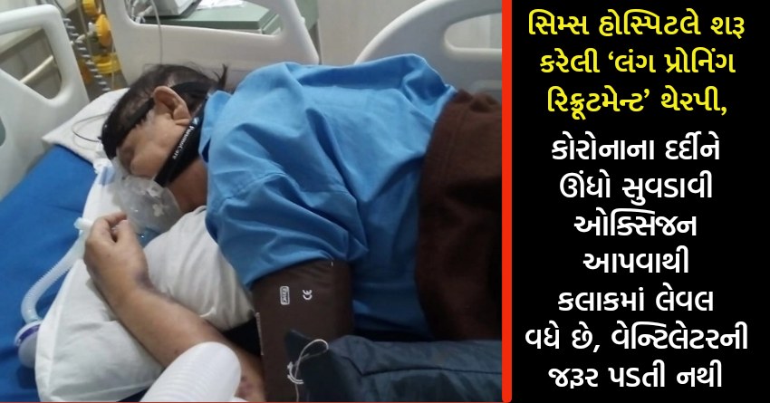 સિમ્સ હોસ્પિટલે શરૂ કરેલી ‘લંગ પ્રોનિંગ રિક્રૂટમેન્ટ’ થેરપી, કોરોનાના દર્દીને ઊંધો સુવડાવી ઓક્સિજન આપવાથી કલાકમાં લેવલ વધે છે, વેન્ટિલેટરની જરૂર પડતી નથી
