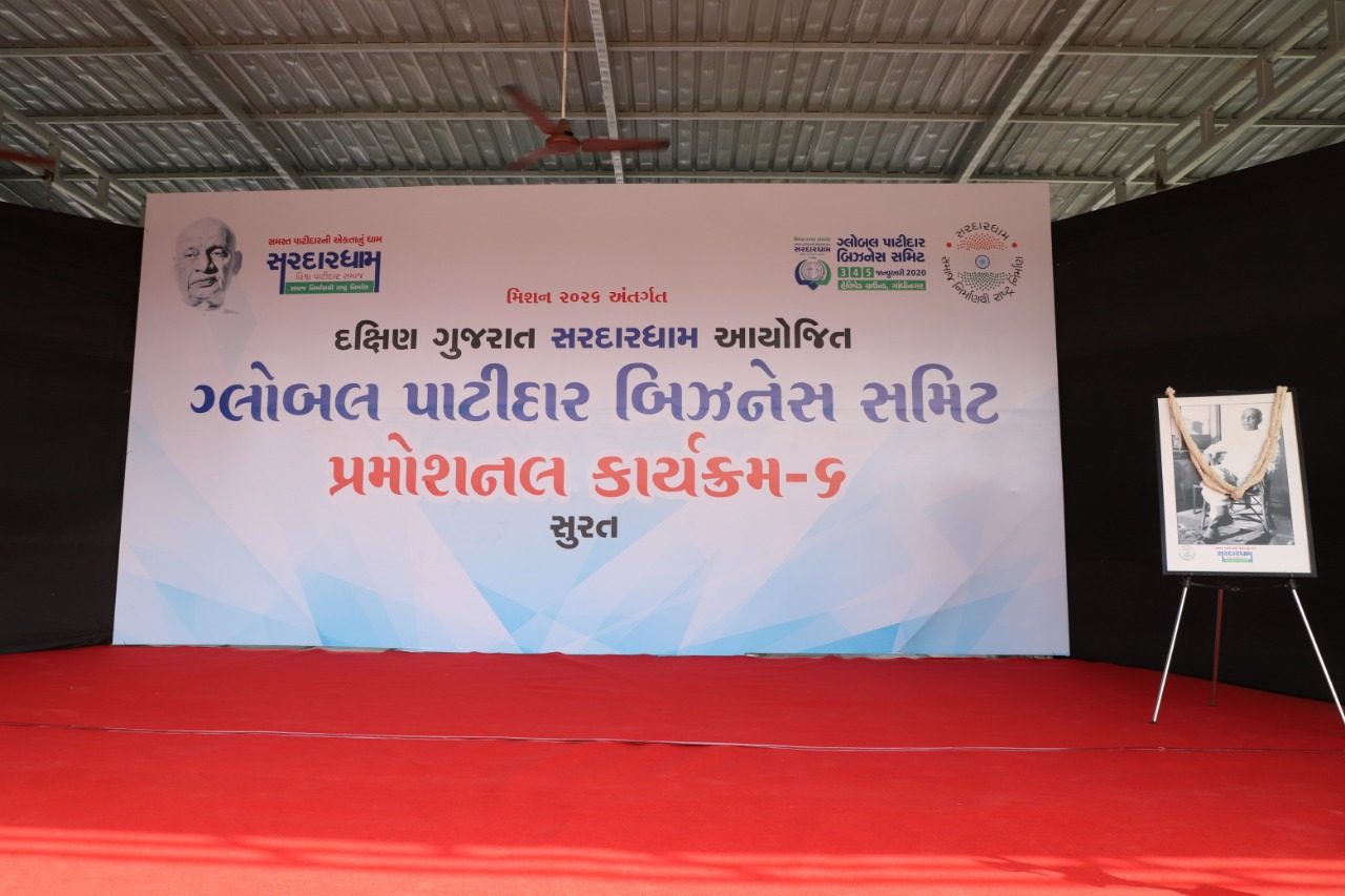 સરદારધામ અમદાવાદ મિશન 2026 અંતર્ગત સરદારધામ દક્ષિણ ગુજરાત આયોજીત ગ્લોબલ બિઝનેસ સમિટ પ્રમોશનલ કાર્યક્રમ-6નું આયોજન સરથાણા સ્થિત હરિક્રિષ્ના કેમ્પસ ખાતે ગોવિંદભાઈ ધોળકિયાના અધ્યક્ષ સ્થાને કરવામાં આવ્યું હતું. તેમણે જણાવ્યું કે 2020માં ઉદ્યોગધંધામાં હરણફાળ ભરતા યુવાનો માટે ખૂબ જ મોટી અને સોનેરી તક છે. સરદારધામ સમાજના વિકાસ અને ઉત્થાન કેમ થાય તે માટે કામ કરે છે. વ્યસનમાં રહેતા યુવાનોને ટકોર કરતા જણાવ્યું હતું કે અમે આખો પાટીદાર સમાજ નિર્વ્યસની જોવા માંગીએ છીએ. કોઈપણ યુવાનો ગુટકા ખાય નહી તેવું ગૌરવ લેવા માંગીએ છીએ. સમગ્ર આયોજનના પ્રણેતા અને સરદારધામના અધ્યક્ષ ગગજીભાઈ સુતરિયાએ જણાવ્યું હતું કે સરદારધામ એ કોઈ સંસ્થા કે એનજીઓ નહી એક વિચારધારા છે. સરદારધામના માધ્યમથી આપણે સમુધ્ધ સમાજ નિર્માણ કરવાની દિશામાં જઈ રહ્યા છીએ.