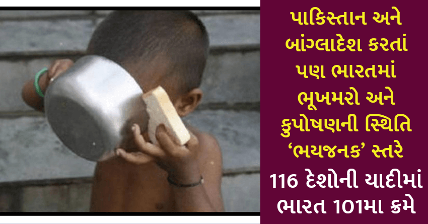 પાકિસ્તાન અને બાંગ્લાદેશ કરતાં પણ ભારતમાં ભૂખમરો અને કુપોષણની સ્થિતિ ‘ભયજનક’ સ્તરે, 116 દેશોની યાદીમાં ભારત 101મા ક્રમે