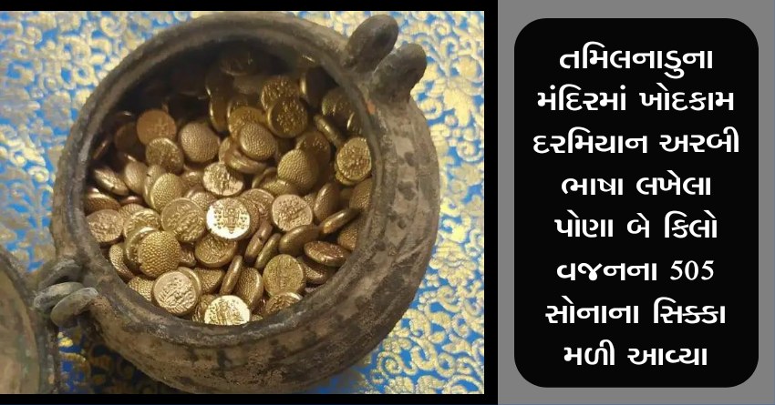 તમિલનાડુના મંદિરમાં ખોદકામ દરમિયાન અરબી ભાષા લખેલા પોણા બે કિલો વજનના 505 સોનાના સિક્કા મળી આવ્યા