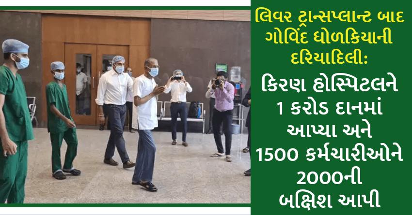 લિવર ટ્રાન્સપ્લાન્ટ બાદ ગોવિંદ ધોળકિયાની દરિયાદિલી: કિરણ હોસ્પિટલને 1 કરોડ દાનમાં આપ્યા અને 1500 કર્મચારીઓને 2000ની બક્ષિશ આપી