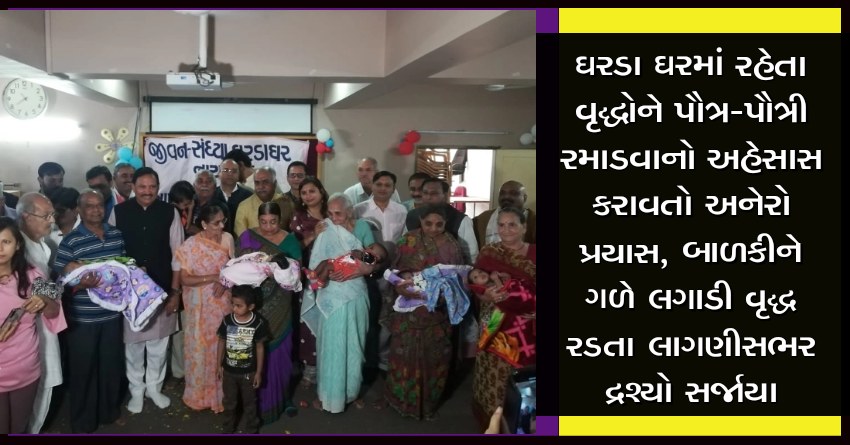 વૃદ્ધાવસ્થામાં પૌત્ર પૌત્રી રમાડવાનો ઉત્સાહ સૌને હોય છે પરંતુ કેટલાક લોકો પોતાના મા-બાપને ઘરડા ઘરમાં મૂકી આવે છે જેથી પરંતુ તેઓને પૌત્ર- પૌત્રીઓને રમાડવા મળતા નથી. આજે નારણપુરામાં આવેલા જીવનસંધ્યા ઘરડાઘરમાં પાલડી શિશુગૃહના સહયોગથી નોલેજ પલ્સ ફાઉન્ડેશનના ટ્રસ્ટીનો જન્મદિવસ હતો. જેથી તેમણેએ તેમનો 60મો જન્મદિવસ જીવનસંધ્યા ઘરડા ઘરમાં વૃદ્ધો સાથે ઉજવ્યો હતો. જેમાં ઘરડા ઘરમાં રહેતા વૃદ્ધોને દાદા દાદી હોવાનો અને મા બાપ વિનાના બાળકોને દાદા-દાદી મળ્યા હોય તેવા દ્રશ્યો જોવા મળ્યા હતા. પાલડી શિશુ ગૃહમાંથી 3.5 મહિનાની એક બાળકીને પણ આજે જ કોલકાતાના એક દંપતીએ તેઓની હાજરીમાં દત્તક લીધી હતી.