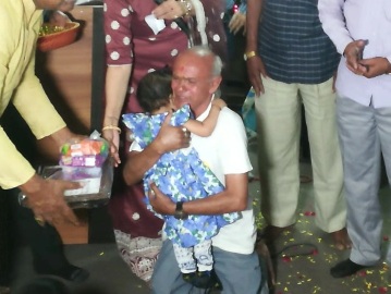 17 જેટલા બાળકો આજે વૃદ્ધાશ્રમમાં લાવવામાં આવ્યા હતા. જ્યાં દરેક બાળકના નામની ચિઠ્ઠી ખોલવામાં આવી હતી. જે બાળકનું નામ નીકળે તે બાળકને વૃદ્ધાશ્રમના વૃદ્ધ કે વૃદ્ધા રમાડતા હતા. એક બાળકીને રમાડતા વખતે વૃદ્ધ રડી પડ્યા હતા. પોતાની સગી પૌત્રી તેમને મળી હોય તેમ તેઓ ગળે લગાડી હતી અને રડી પડ્યા હતા.