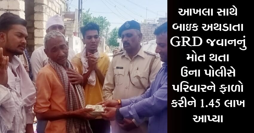 આખલા સાથે બાઇક અથડાતા GRD જવાનનું મોત થતા ઉના પોલીસે પરિવારને ફાળો કરીને 1.45 લાખ આપ્યા