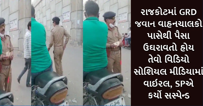 રાજકોટમાં GRD જવાન વાહનચાલકો પાસેથી પૈસા ઉઘરાવતો હોય તેવો વિડિયો સોશિયલ મીડિયામાં વાઇરલ, SPએ કર્યો સસ્પેન્ડ