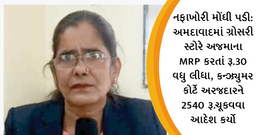 જો તમે પણ કોઈ મોલ દુકાન કે સ્ટોરમાં છાપેલી કિંમત કરતાં વધુ રકમ આપીને છેતરાયા હોવ તો આ ખબર તમારા માટે મહત્ત્વની છે. જો ગ્રાહક જાગૃતિ અને સતર્ક હોય તો લાંબી લડત આપીને પણ તે અન્ય માટે એક ઉદાહરણરૂપ સાબિત થઈ શકે છે. એક આવું ઉદાહરણ અમદાવાદમાં સામે આવ્યું છે. શહેરના એક જાણીતા ગ્રોસરી સ્ટોરને પ્રોડક્ટ પર લખેલી(MRP) કિંમત કરતાં 30 રૂપિયા વધુ લેવા ભારે પડ્યા છે. પાંચ વર્ષ બાદ રૂપિયા 30 સામે તેને રૂપિયા 2540 ગ્રાહકને ચૂકવવાનો વારો આવ્યો છે. એક જાગ્રત નાગરિકે ગ્રોસરી સ્ટોર સામે કરેલા દાવા મામલે કન્ઝયુમર કોર્ટે અરજદારની તરફેણમાં હુકમ કર્યો છે, જેમાં અરજદારને વ્યાજ સહિતનું વળતર પરત મળ્યું છે.