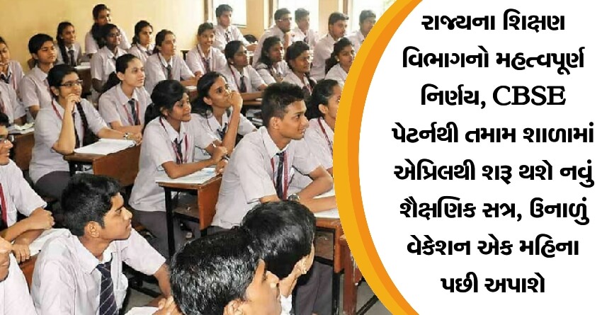 રાજ્યના શિક્ષણ વિભાગનો મહત્વપૂર્ણ નિર્ણય, CBSE પેટર્નથી તમામ શાળામાં એપ્રિલથી શરૂ થશે નવું શૈક્ષણિક સત્ર, ઉનાળું વેકેશન એક મહિના પછી અપાશે