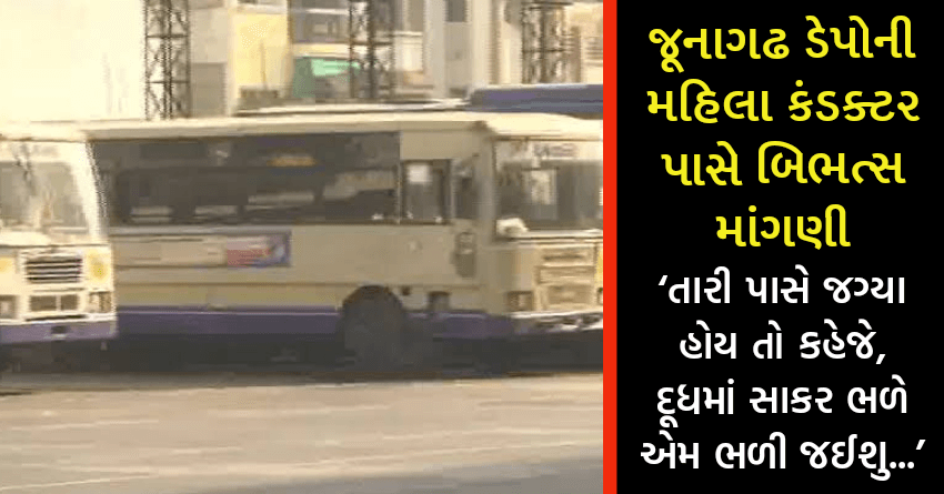 જૂનાગઢ ડેપોની મહિલા કંડક્ટર પાસે બિભત્સ માંગણી,’તારી પાસે જગ્યા હોય તો કહેજે, દૂધમાં સાકર ભળે એમ ભળી જઈશુ…’