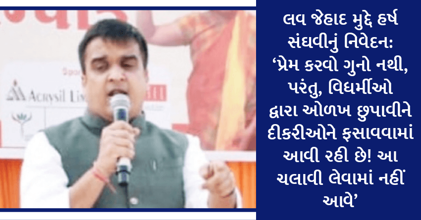 લવ જેહાદ મુદ્દે હર્ષ સંઘવીનું નિવેદન: ‘પ્રેમ કરવો ગુનો નથી, પરંતુ, વિધર્મીઓ દ્વારા ઓળખ છુપાવીને દીકરીઓને ફસાવવામાં આવી રહી છે! આ ચલાવી લેવામાં નહીં આવે’