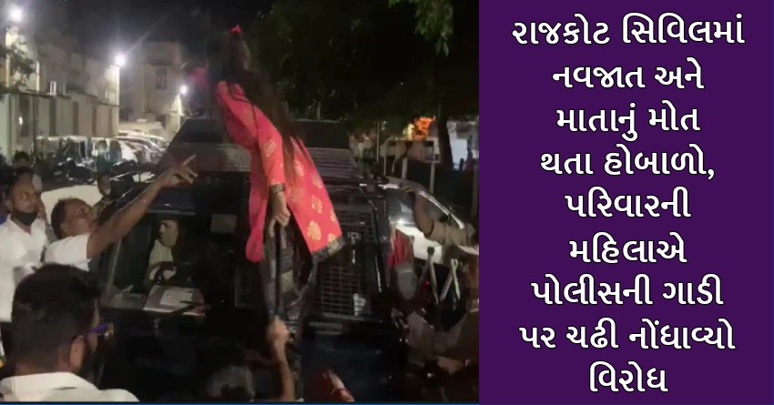 રાજકોટ સિવિલમાં નવજાત અને માતાનું મોત થતા હોબાળો, પરિવારની મહિલાએ પોલીસની ગાડી પર ચઢી નોંધાવ્યો વિરોધ