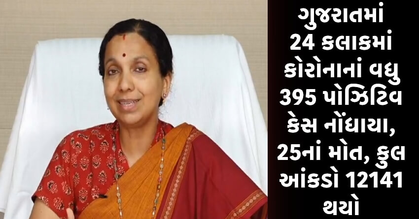 ગુજરાતમાં 24 કલાકમાં કોરોનાનાં વધુ 395 પોઝિટિવ કેસ નોંધાયા, 25નાં મોત, કુલ આંકડો 12141 થયો