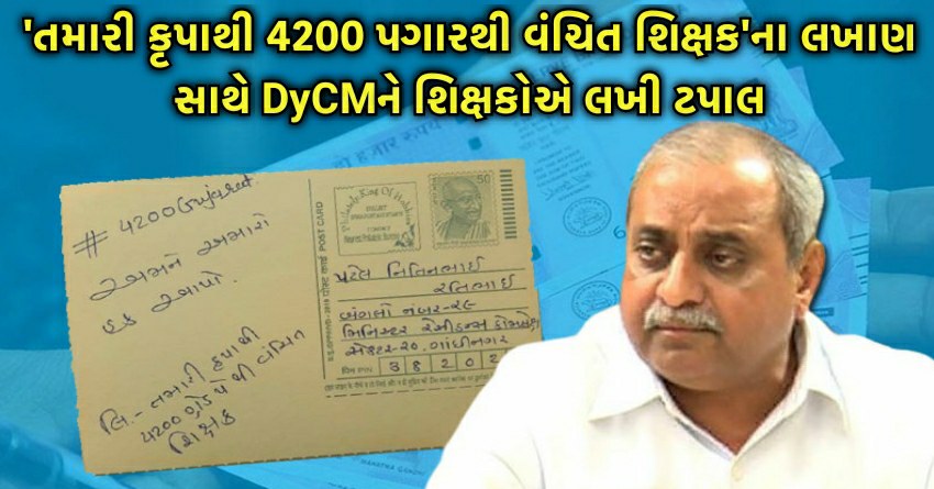‘તમારી કૃપાથી 4200 પગારથી વંચિત શિક્ષક’ના લખાણ સાથે DyCMને શિક્ષકોએ લખી ટપાલ